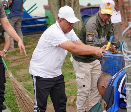 Wabup Husni Tamrin mengikuti karya bakti bersama Kodim 0313/KPR di Pasar Baru Pangkalan Kerinci.