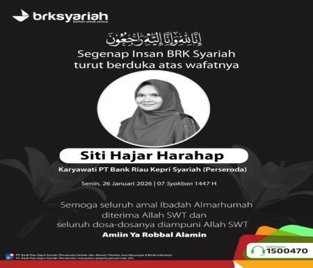 BRK Syariah Berduka atas Wafatnya Siti Hajar Harahap, Imbau Publik Hormati Privasi Keluarga BRK Syariah menyampaikan duka cita mendalam atas wafatnya Siti Hajar Harahap.